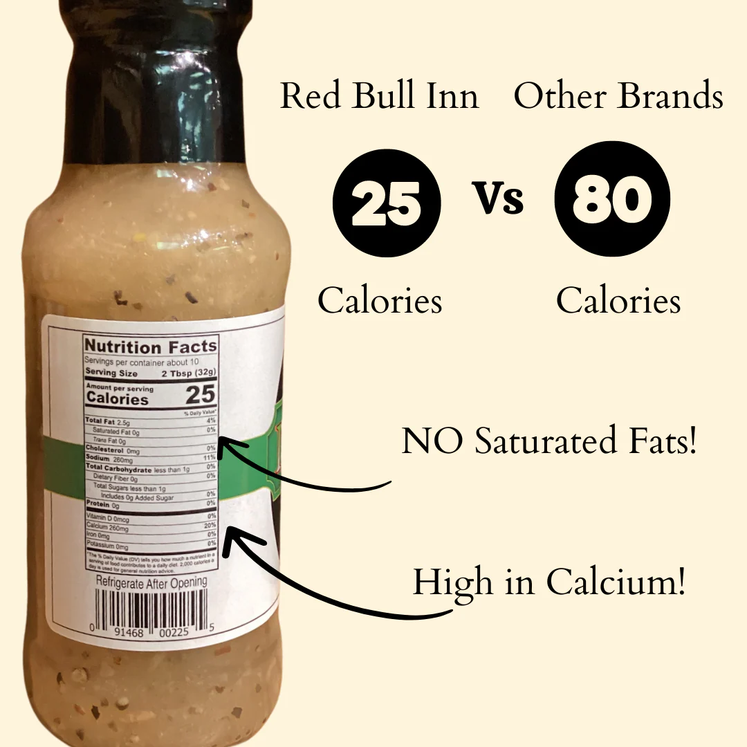 Red Bull Inn's beloved Home Made Italian Dressing is now available in 11.25oz, 25oz, and 132oz sizes, ensuring there's always plenty to go around for every occasion. This Pittsburgh classic has been a cornerstone of countless meals, adding a burst of flavor that keeps people coming back for more. Drizzle it generously over crisp salads for a refreshing burst of tanginess that perfectly complements fresh greens, ripe tomatoes, and crunchy veggies. Enhance your sandwich game by spreading it on sandwiches and wraps, infusing every bite with a zesty kick that will leave your taste buds dancing with delight!