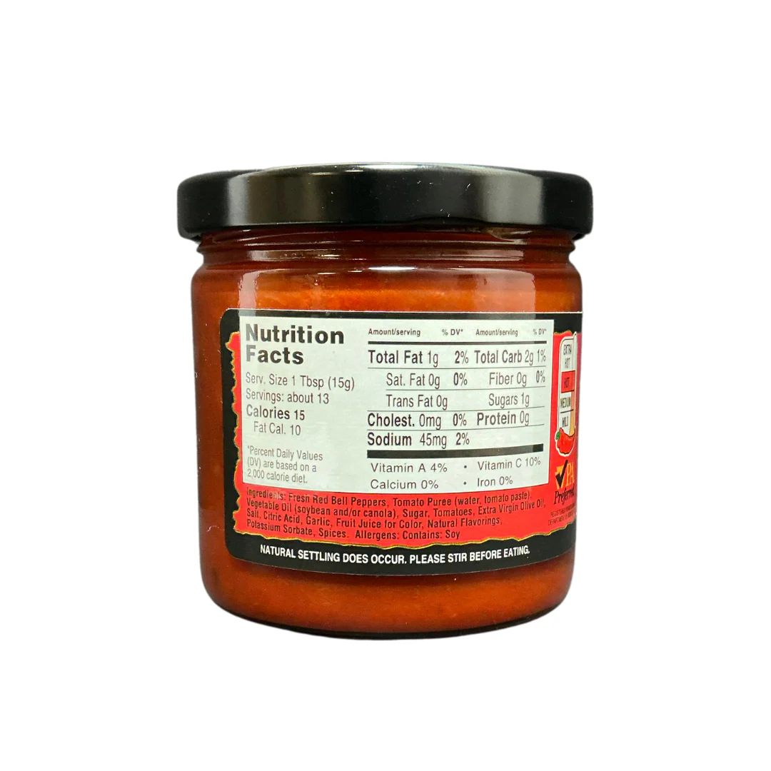 If you love roasted peppers then this is the product for you. Rosie's Red Pepper Spread is a delicious blend of ground red bell peppers in a savory tomato sauce. Our pepper spread has hundreds of uses including pizza, eggs, meat, hot dogs, veggies, chips, quick dips, and omelets. Many recipes today call for roasted red peppers or red pepper puree, try our pepper spread as a substitute and we guarantee you won't be sorry. We make our pepper spread in 3 different flavors hot, mild, and sweet to accommodate everyone's taste buds.